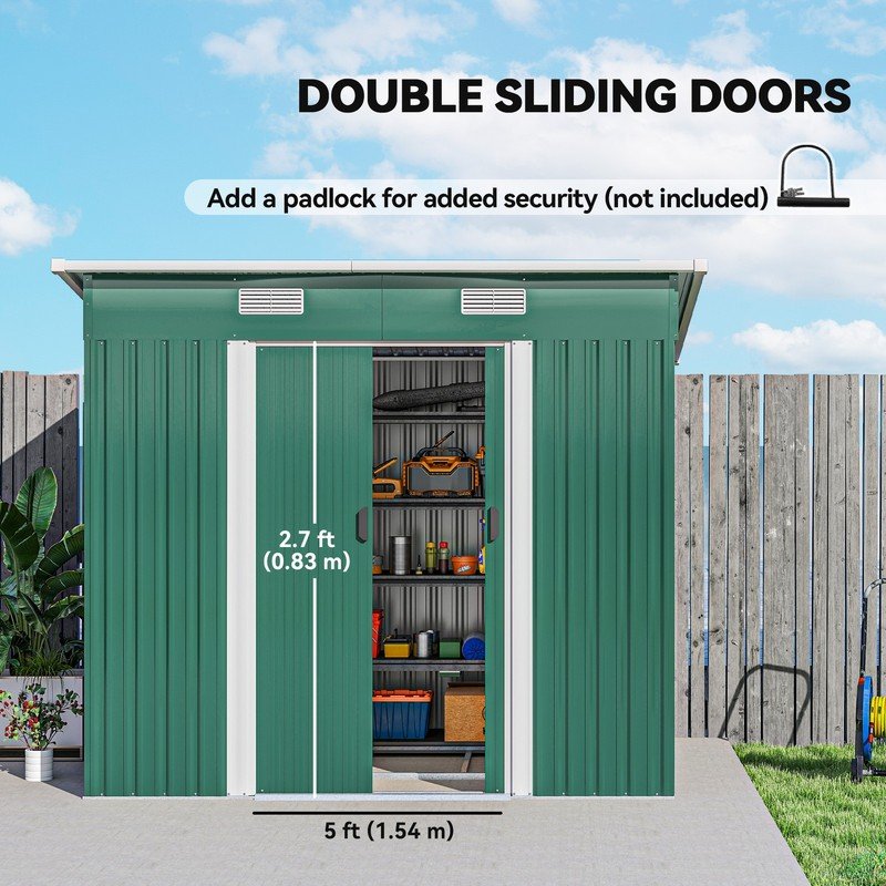 • Corrugated metal structure: Strong formation, shed stands steady and safely houses the inner items. Sloped roof to prevent rainwater build-up.