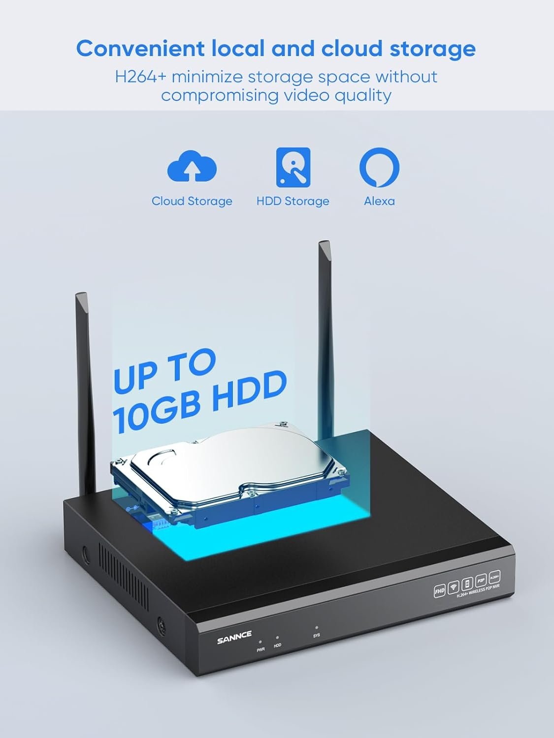 • 【Expandable 8-Channel 5MP NVR】 The powerful WiFi network video recorder supports max. 8 pcs security cameras simultaneously, from 1MP to 5MP resolution. The built-in 1 TB HDD with H.264+ coding saves more videos & consumes less bandwidth than H.264 systems.