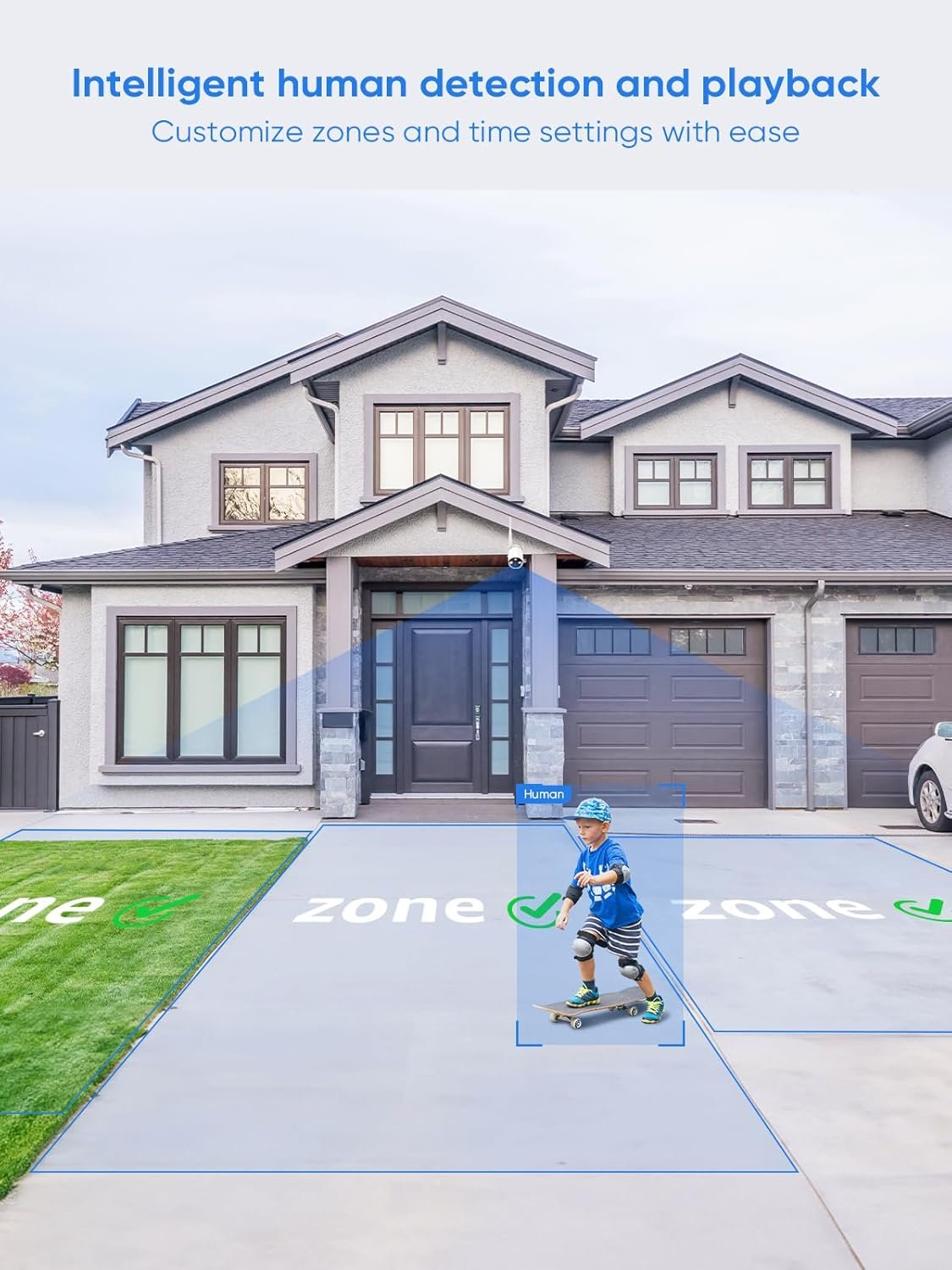 • 【Accurate AI Detection & Remote Access】 The system can recognize a person among all motion objects and send you instant app pushes & email alerts. You’re always allowed to control the system remotely via 3G/4G/5G or WiFi via all smart devices.