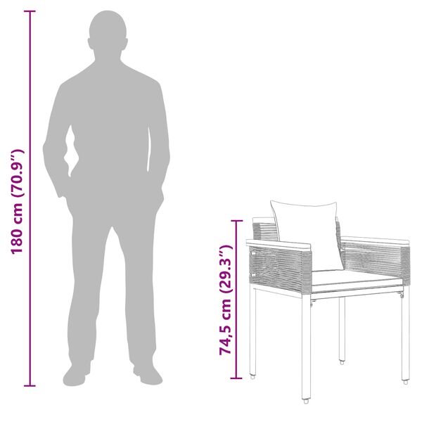 - Material Composition: Solid Poly Rattan creates a weather-resistant body, ideal for outdoor use. Powder-coated steel frames provide enhanced durability and resistance to stresses. The elegant blend of these materials results in a stylish and robust ensemble perfect for outdoor living.
